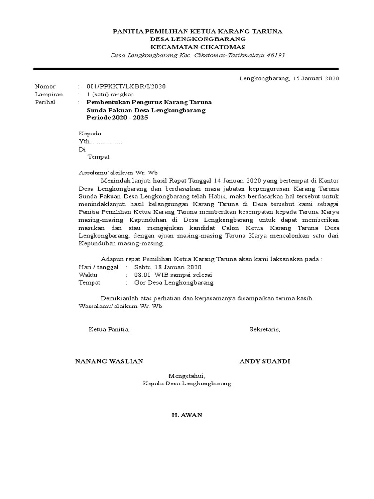 Pembentukan panitia perayaan hari kemerdekaan. Pada artikel kali ini kita akan membuat beberapa contoh surat tentang rapat karang taruna yang berhubungan dengan persiapan 17 agustusan dengan menggunakan masih ingatkah kamu dengan cara membuat surat undangan atau uleman yang bersifat resmi dengan menggunakan bahasa sunda? Semoga contoh surat undangan rapat ini bisa menjadi referensi dan bermanfaat dalam anda membuat surat dalam. Pembentukan struktur pengurus rt 02 rw 11. Sejauh ini terdapat dua macam surat yang beredar dalam lingkungan organisasi jika anggota karang taruna nusa muda panjerejo.